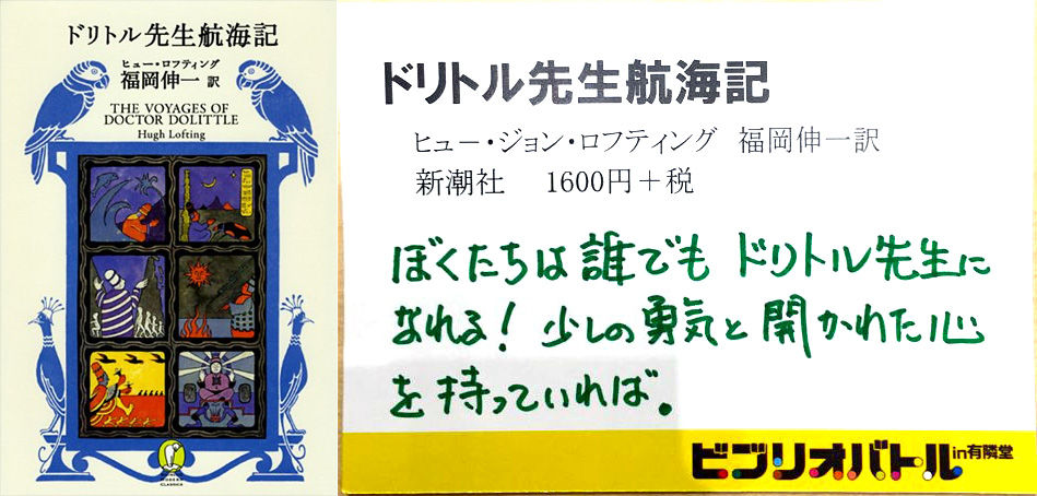 池田さんご紹介、『ドリトル先生航海記』がチャンプ本に決定しました! おめでとうございます~!